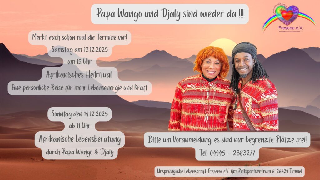 Am Samstag den 13.12.2025 ist es wieder soweit. Papa Wango und Djaly machen bei uns im Verein ein einzigartiges afrikanisches Heilritual.